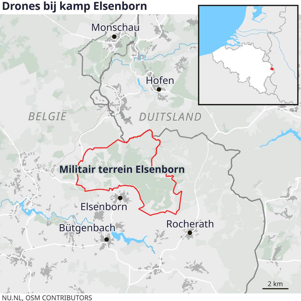 Omroep VRT meldt dat de drones rond 1.45 uur over het militaire terrein van de landmacht vlogen. Dat terrein is 28 vierkante kilometer en ligt vlak bij de Duitse grens. Op het terrein is een trainingskamp van de landmacht met onder meer een veiligheidszone waar schietoefeningen worden gehouden, schrijft de Belgische omroep.